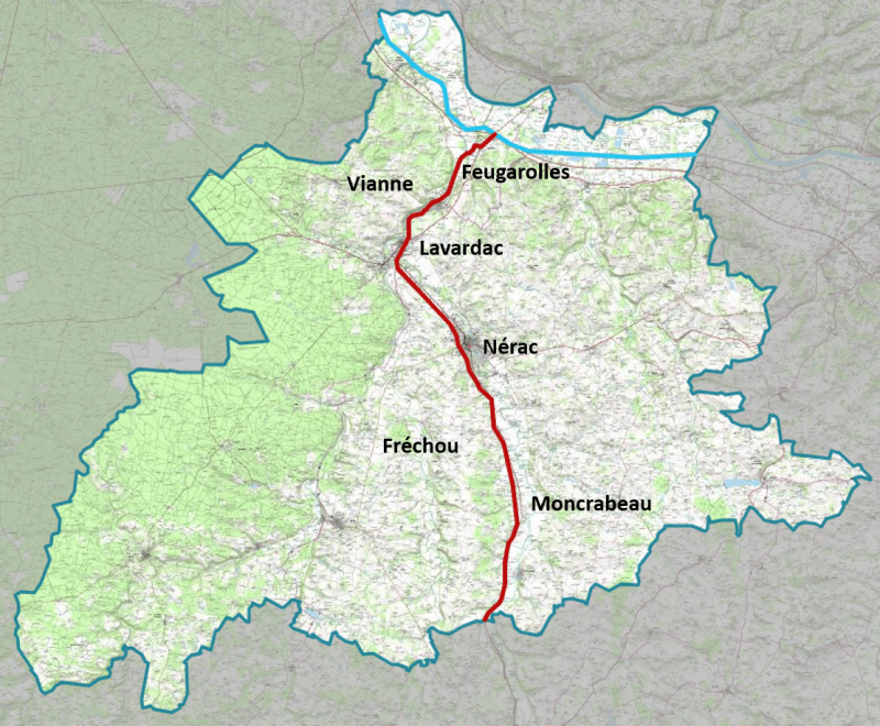 There’s a brand new bicyle route in our part of the Lot-et-Garonne, and it’s a good one. The Voie Verte de la Vallée de la Baïse runs 27 km from Feugarolles to Moncrabeau, following an old railway line through the Baïse valley. It opened in June 2025, and it passes through some of the prettiest towns in the Pays d’Albret — including Vianne, Lavardac, and Nérac.