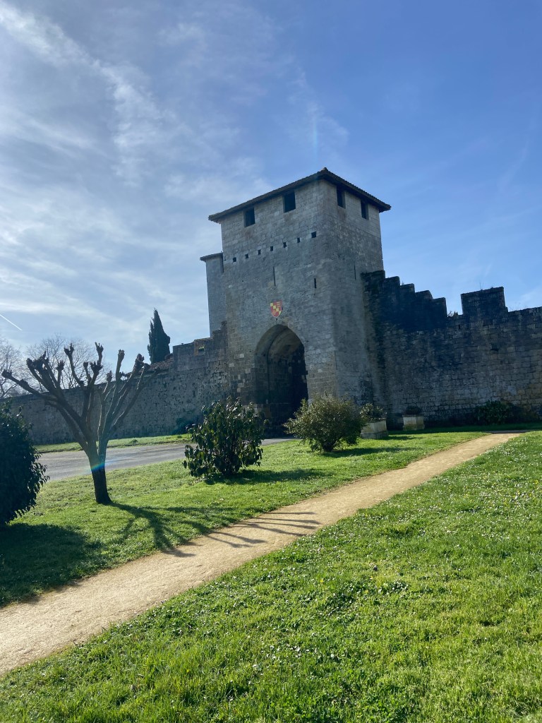 Vianne is an English bastide, founded in 1284 by Jourdain de l’Isle in partnership with King Edward I of England — built to counter the French bastide at Lavardac just upstream. What makes Vianne special is its fortifications. This is one of the very few bastides in Gascony to have kept its entire defensive wall — 1,250 metres of ramparts forming a near-perfect rectangle, with square gate towers and round corner towers still standing. You walk through one of the four original gates and you’re inside a medieval walled town with a grid of streets, an old church that predates the bastide by 150 years, and a quiet, lived-in atmosphere that feels genuinely unchanged. It’s not a museum — people still live here — but it feels deeply, unmistakably medieval.